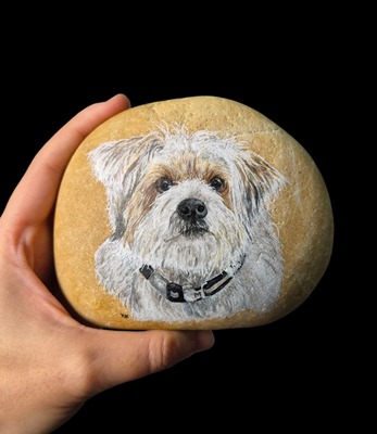 Depuis qu'on se connait, elle a déjà peint pour moi 4 superbes galets pour faire honneur à 4 loulous chers à mon coeur .